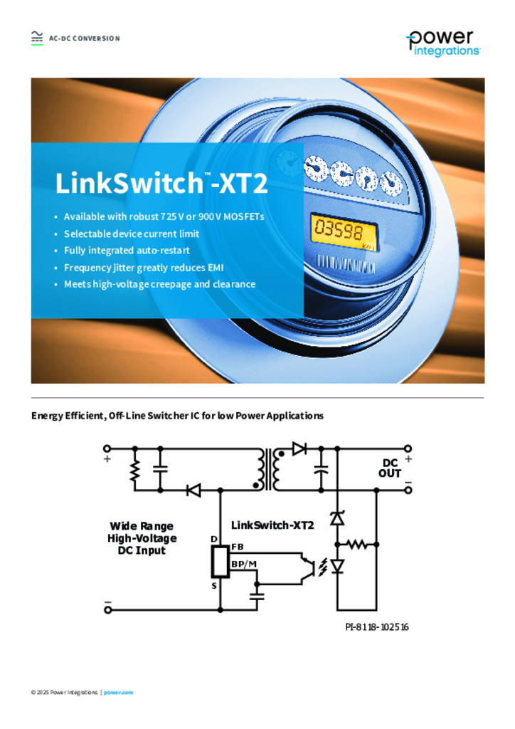 Highly Energy Efficient Off-line Switcher IC with Integrated 725 V / 900 V MOSFET and System Level Protection for Low Component-Count Power Supplies