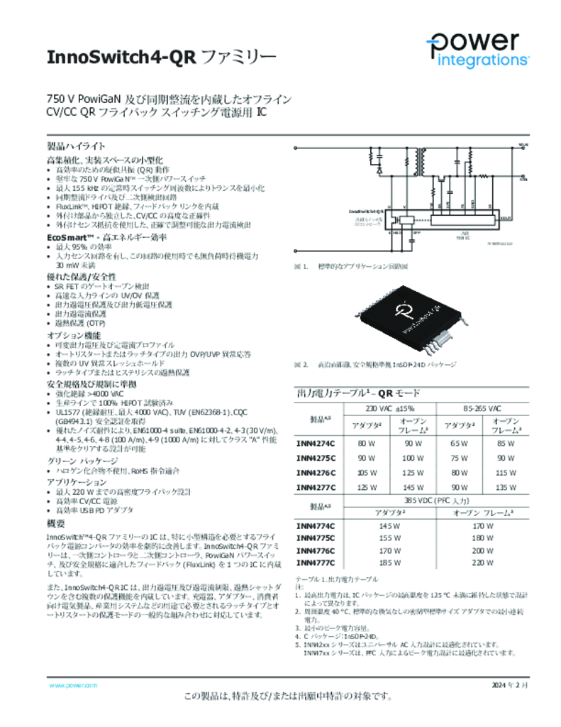 InnoSwitch4-QR データ シート