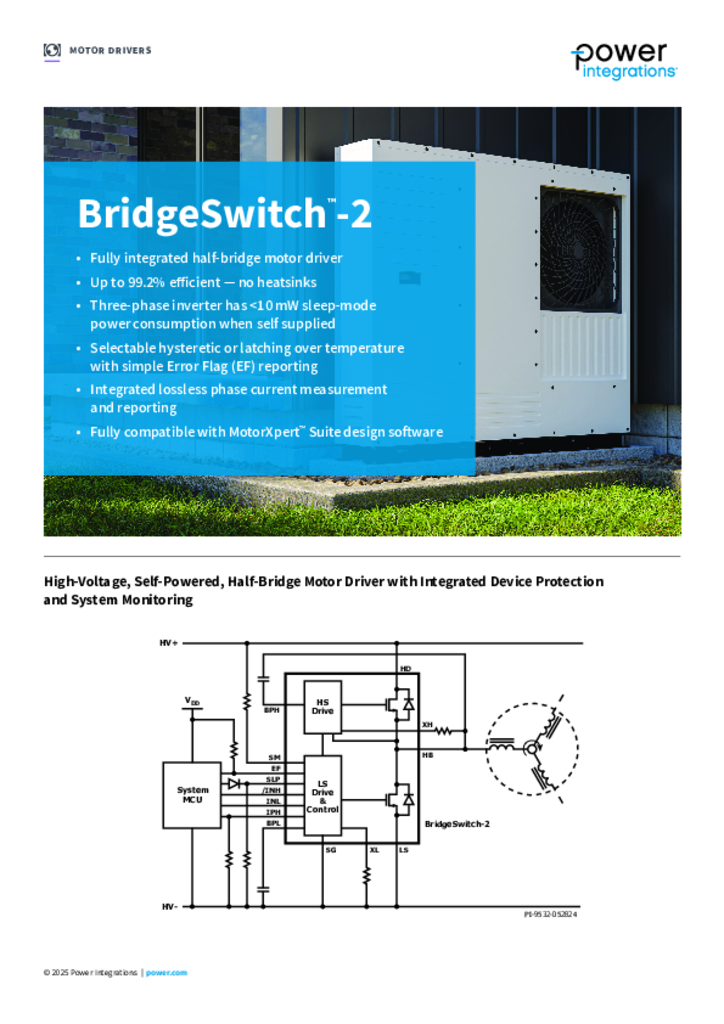 High-Voltage, Self-Powered, Half-bridge Motor Driver with Integrated Device Protection and System Monitoring. Up to 1 Horsepower Output. Lower than 12 mW Sleep Mode Consumption. Improved Fault Reporting.